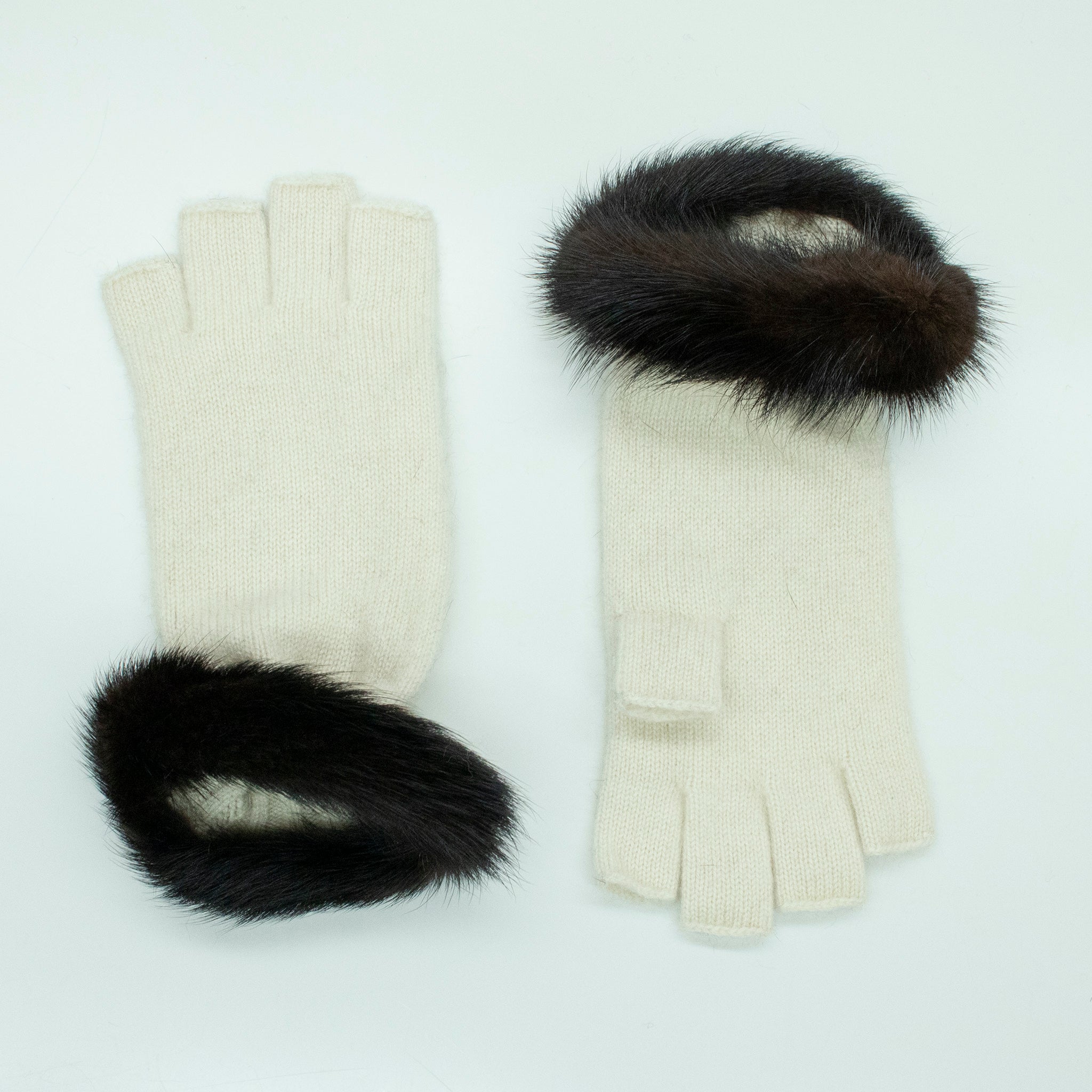 Experience the perfect balance of classic luxury and contemporary flair with these cashmere fingerless gloves. Adorned with genuine mink fur trim at the cuff, they provide warmth and refined style while allowing effortless functionality. An ideal choice for those seeking sophisticated elegance with a modern edge.