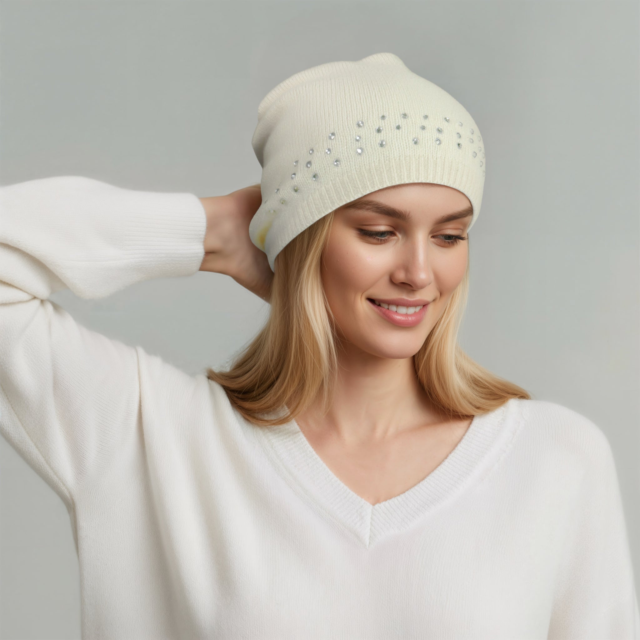 Effortlessly elegant, this slouchy hat combines relaxed silhouette with refined sparkle. Crystal embellishments catch the light for a touch of understated glamour, while the generous, unstructured crown offers comfort and contemporary style. Perfect for elevating casual looks with a hint of sophistication.