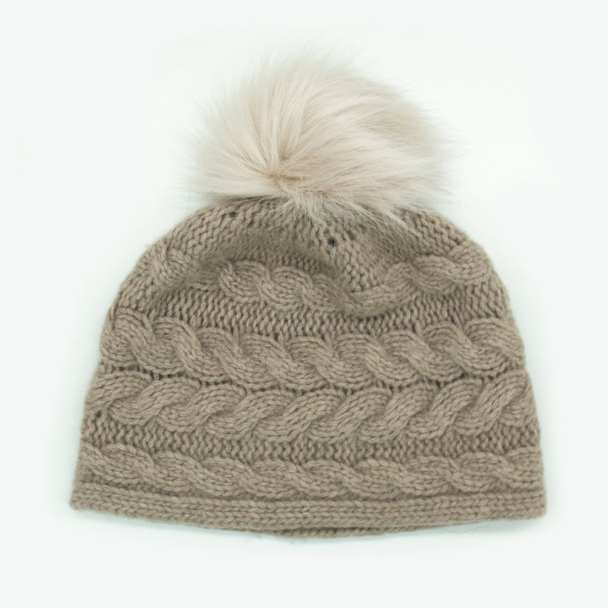 Elevate your winter wardrobe with this refined chunky knit beanie, featuring a classic cable-knit design and luxurious faux fur pom-pom accent. The substantial construction provides warmth and texture, while the sophisticated styling makes it an effortless addition to any cold-weather ensemble.
